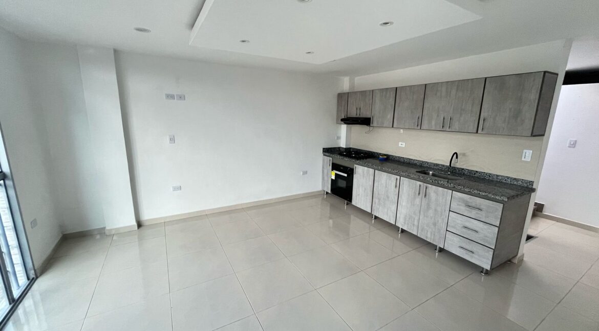 Segundo piso: apartamento aparte con sala comedor amplia, cocina integral, baño social, dos habitaciones con escalas hacia el tercer piso.